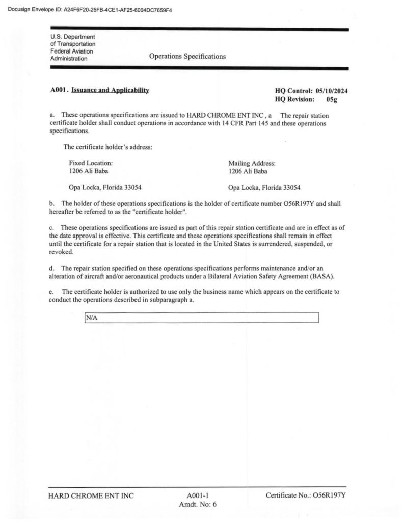 FAA REPAIR STATION #O56R197Y